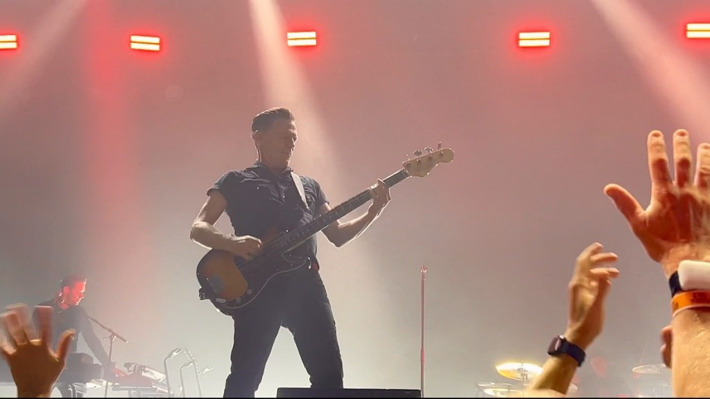 Aquele romantismo de guitarras abertas, versos diretos e promessas cantadas sem ironia, como quando sustenta, com absoluta convicção, o verso “take my life”. E todo mundo se arrepia.